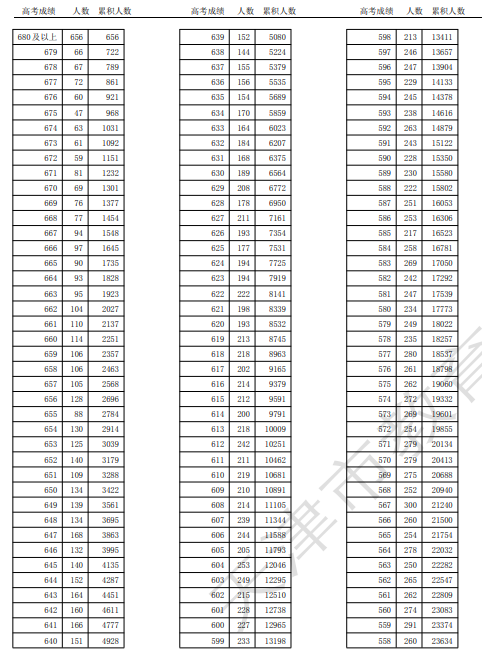 一分一段表就像高考成绩的"全景地图",清晰展示了每个分数对应的考生人数。以600分为例,表格会显示全市有多少人考了这个分数,以及累计多少人达到或超过这个分数。这种呈现方式让考生能直观了解自己在全市的定位。