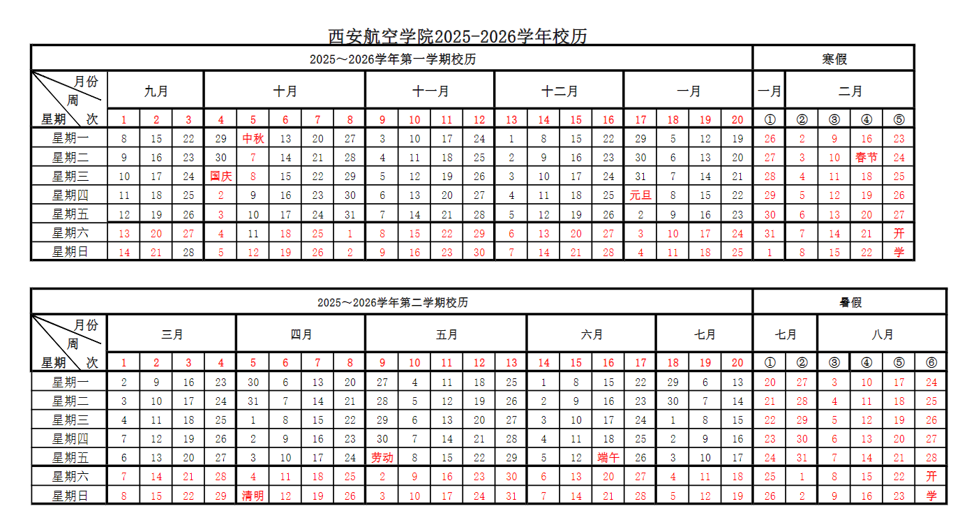 西安航空学院2026年寒假放假时间已经正式公布啦!根据最新消息,学校将从为1月26日至3月1日放寒假。春季学期将于3月2日(星期一)上课,共35天,足够大家好好休息调整,或者安排一些有意义的活动了。