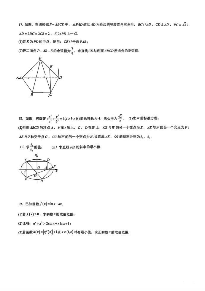 2026湖南炎德英才长郡二十校联盟高三12月联考数学试题及答案解析