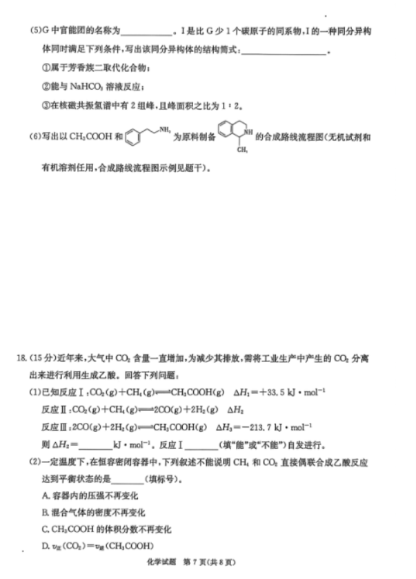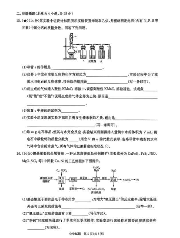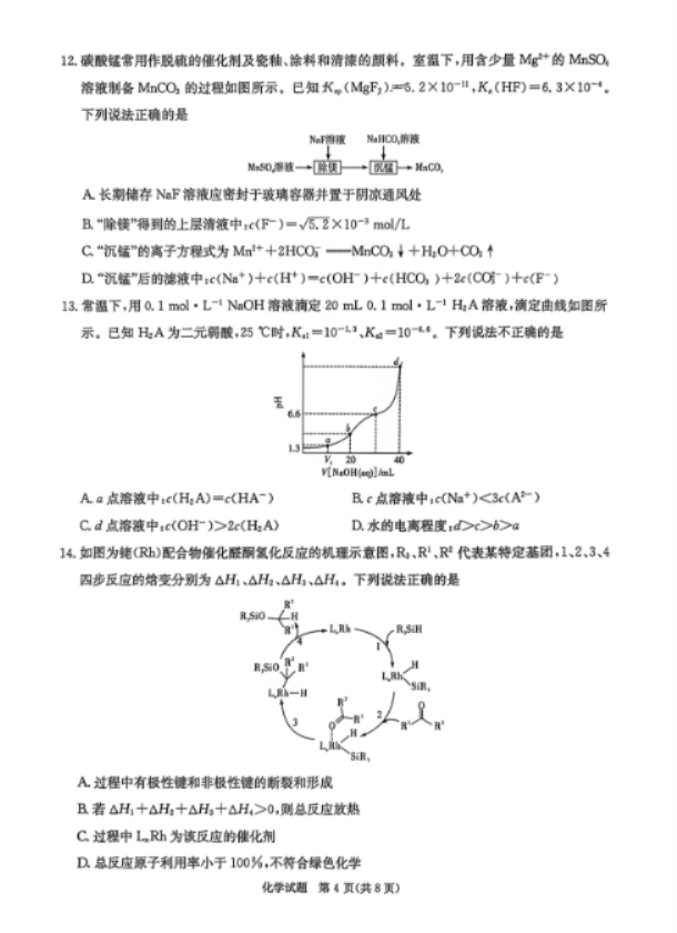 湖北2026届高三第一次八省联考(T8联考)化学试题及答案解析