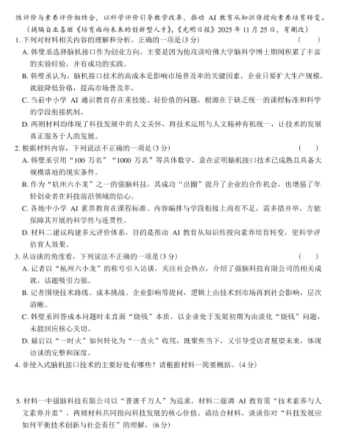 北京高考2025语文试题难不难 含语文试卷估分方法