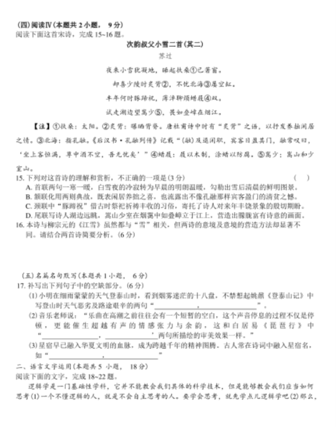 2026届济南市长清区高三上学期期中学习质量检测语文试卷