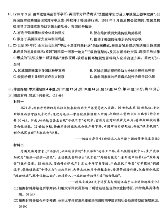 炎德名校联考联合体2026届高三年级1月联考历史试题及答案解析