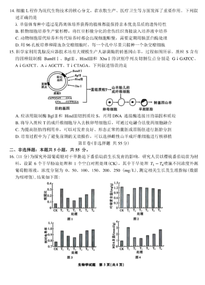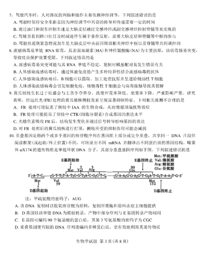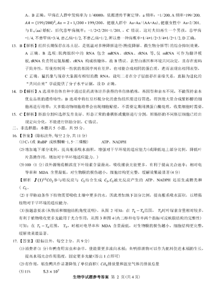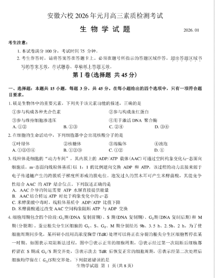 九师联盟2026届高三12月联考教学质量监测生物试题及答案解析