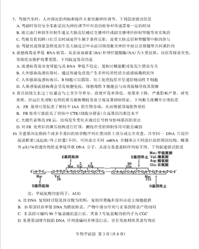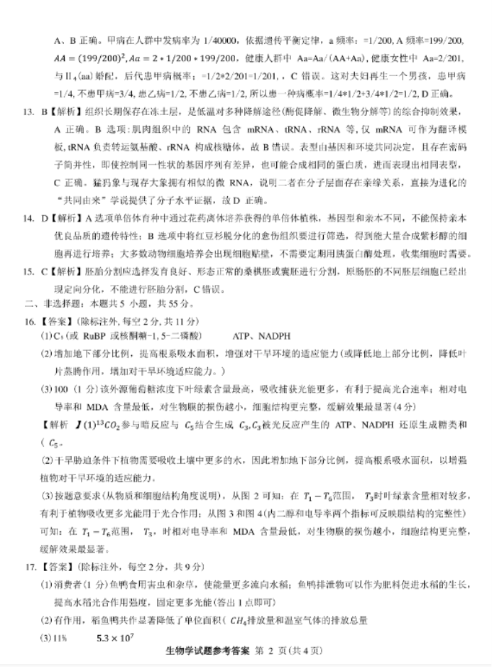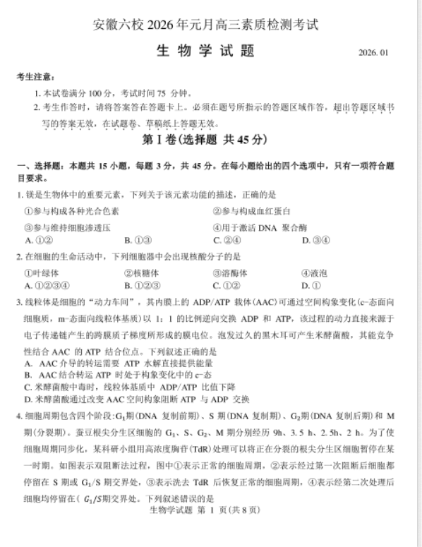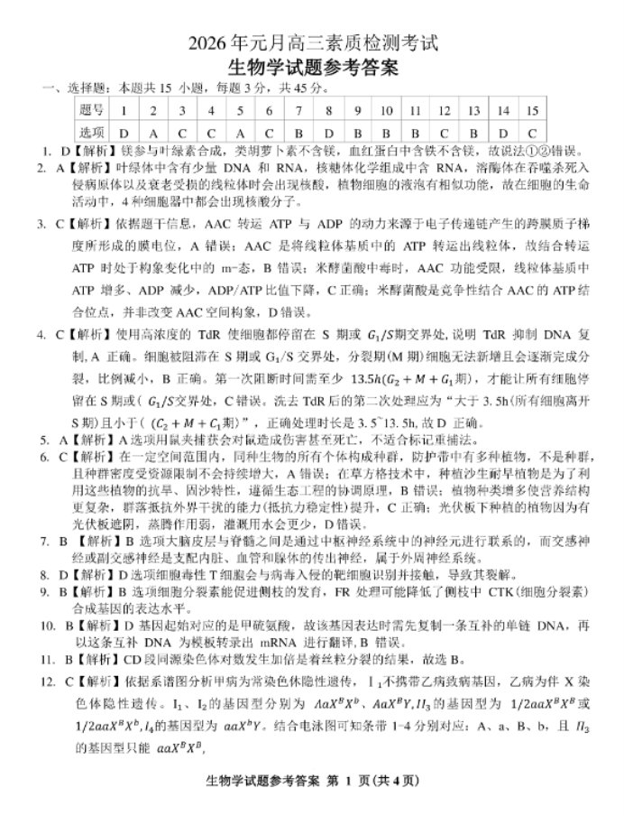 九师联盟2026届高三12月联考教学质量监测生物试题及答案解析