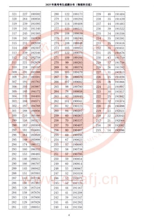 高考一分一段表意思是将全省同科类考生的档案分从高到低排列,再按每1分一段,统计“本段人数”;从本段向上一直到最高分段的所有“本段人数”相加,则为“累计人数”。小编为大家整理了2025年福建高考物理类一分一段表,2026考生们可以参考一下。